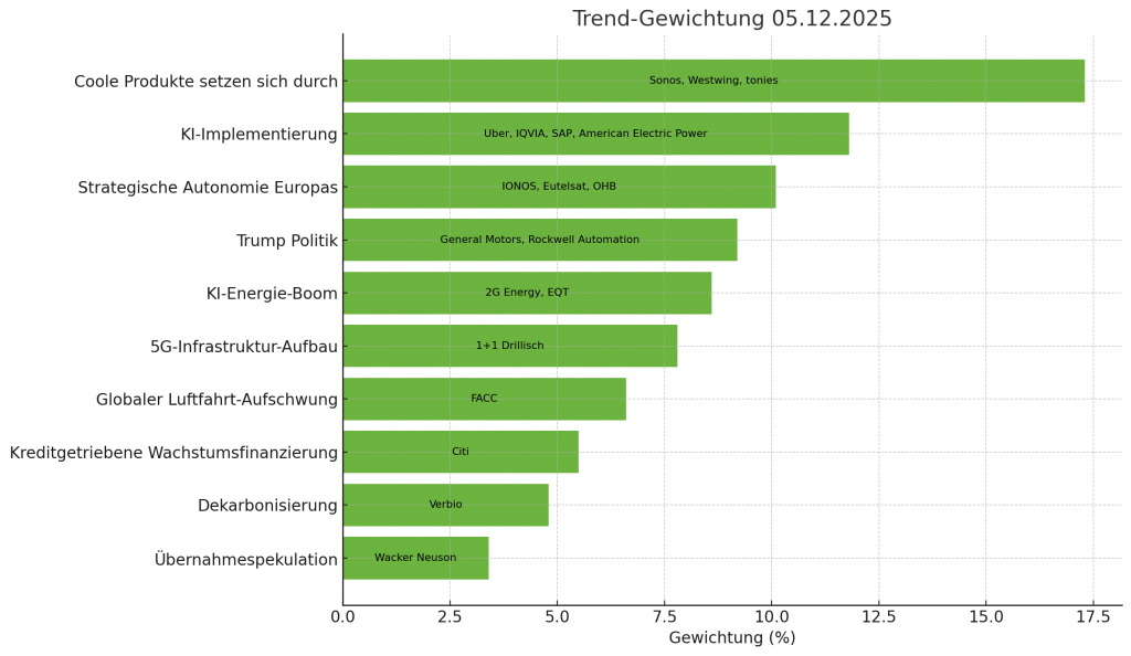 Das Trend-Surfer Wikifolio besteht aktuell aus 19 Unternehmen und den folgenden Trends: